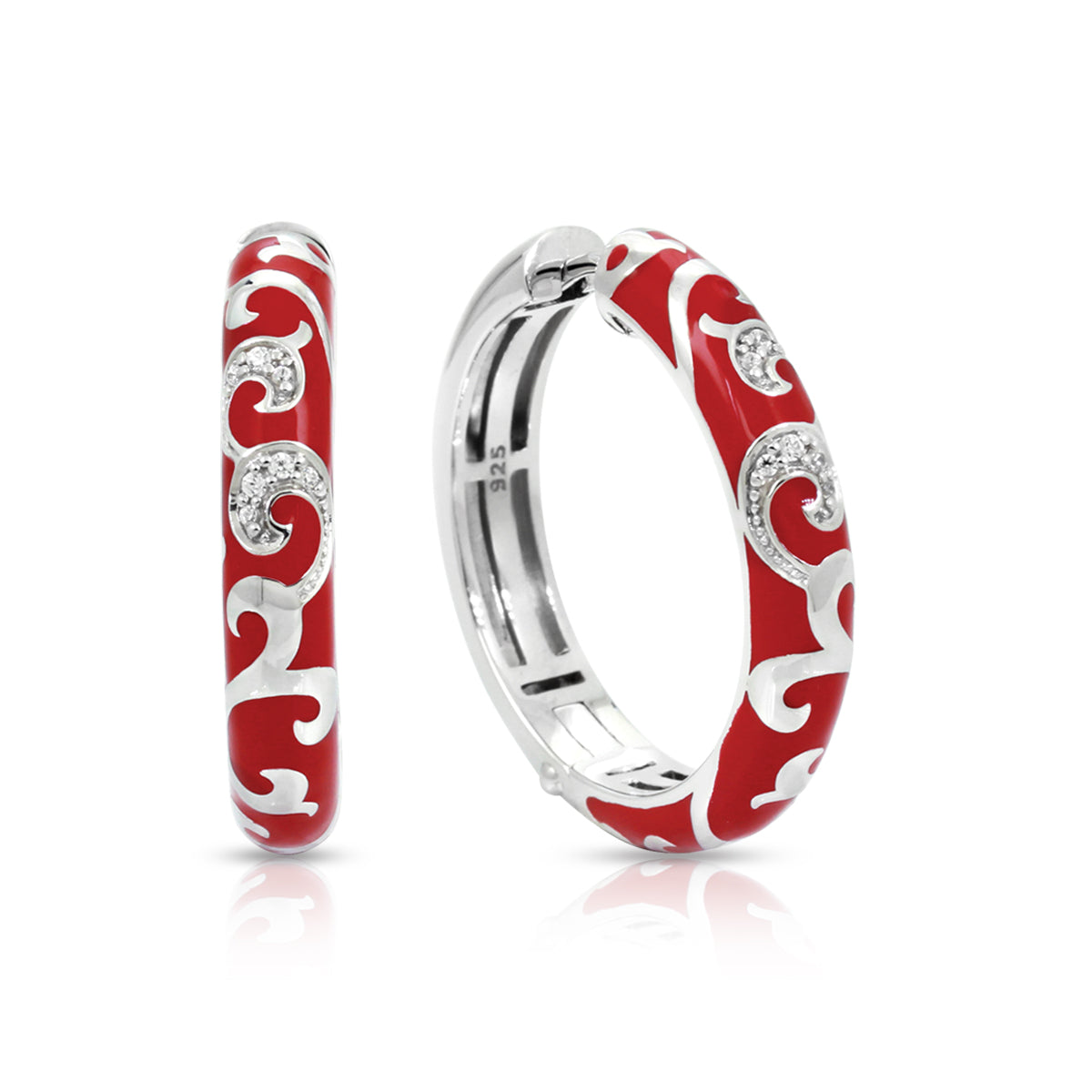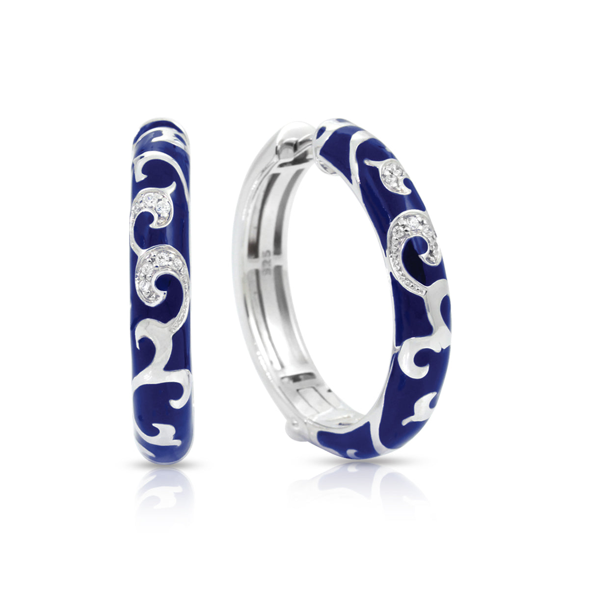 Description: Hand-painted Italian enamel with white stones set into rhodium-plated, nickel allergy-free, 925 sterling silver.